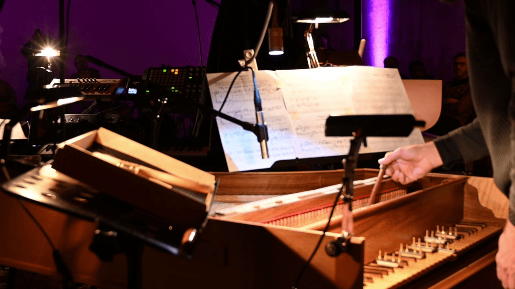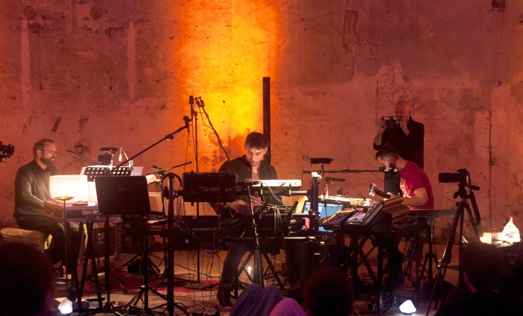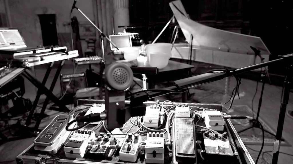 Dans cette pièce, l’orgue est équipé de micros. Ils envoient le son à une station audio numérique qui permet d’en moduler les fréquences en direct. Les sons de l’orgue, joué par Olivier Dec, rencontrent la guitare, la basse et les bruits analogiques joués par Pierre Alexandre Faurd. L’ensemble est complété par le jeu aérien des vaisseaux de